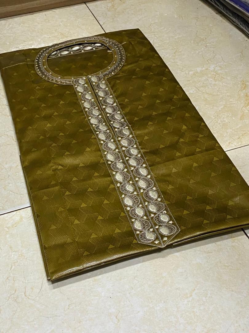 This elegant piece features a fully finished hand-stitched neck and pocket design on premium Bazin fabric.Note to Customers: The garment is currently "semi-finished." Once purchased, we will complete the sewing of the sleeves and body according to your specific measurements to ensure 100% satisfaction and a perfect fit.Fabric: High-Luster Bazin/ShaddaService: Custom tailoring included in the price.Delivery: Fast shipping within Nigeria and abroad.