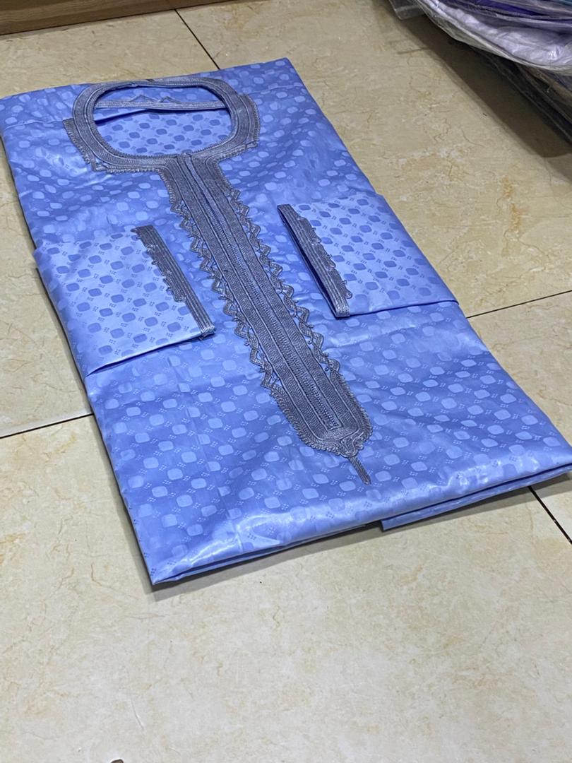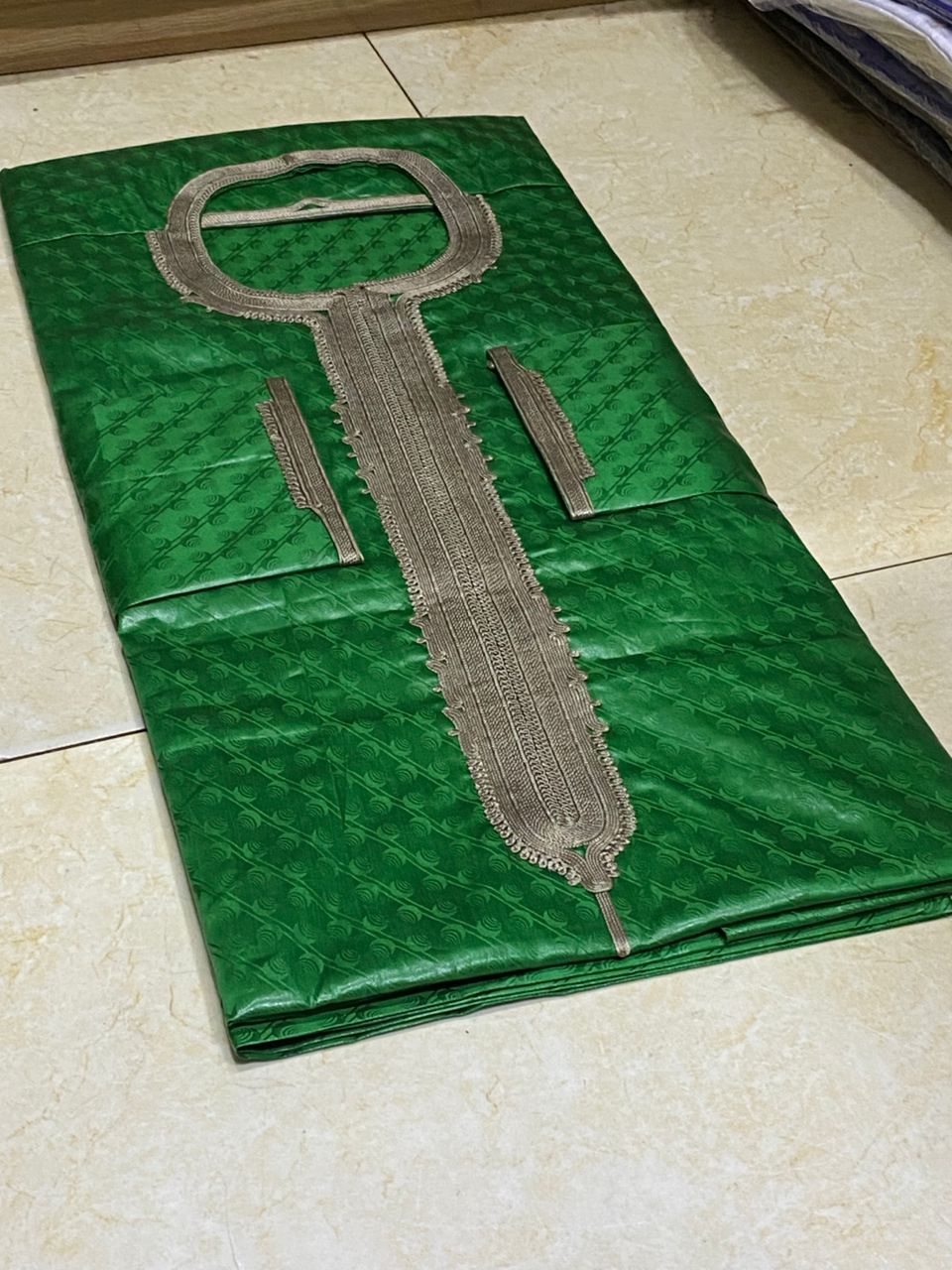 This elegant piece features a fully finished hand-stitched neck and pocket design on premium Bazin fabric.Note to Customers: The garment is currently "semi-finished." Once purchased, we will complete the sewing of the sleeves and body according to your specific measurements to ensure 100% satisfaction and a perfect fit.Fabric: High-Luster Bazin/ShaddaService: Custom tailoring included in the price.Delivery: Fast shipping within Nigeria and abroad.
